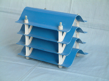本品有聚氯乙烯、聚丙烯淋水片,經(jīng)加熱模壓成型制得塑料蜂窩填料。有無捻玻璃布作增強填料制得玻璃鋼蜂窩填料。廣泛應(yīng)用于給排水處理的沉淀工藝中,具有適用范圍廣、沉淀效果佳、占地面積小等優(yōu)點。