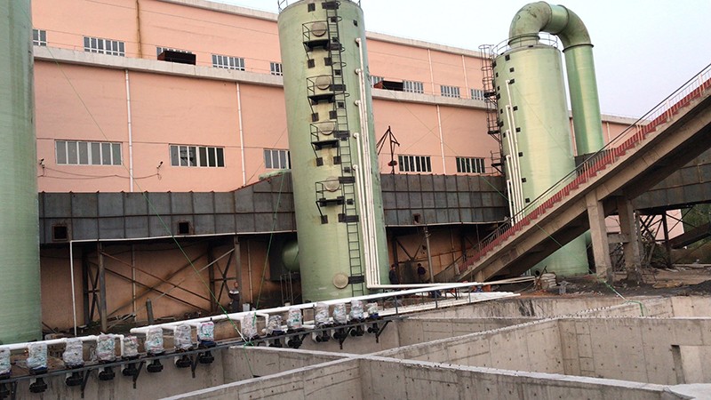 一、玻璃鋼脫硫塔設備工流程:首先,玻璃鋼脫硫塔熱煙氣進入預洗滌塔,與飽和硫酸銨溶液接觸,煙氣在此過程中被冷卻,同時,由于飽和硫酸銨溶液中水的蒸發(fā)而析出硫酸銨晶體。已被冷卻的煙氣通過除霧器進入SO2吸收塔。在吸收塔中,氨與水混合成氨液。煙氣中的SO2在此被吸收,與氨反應生成硫酸銨。后,脫硫后煙氣經(jīng)120米高的煙囪排入大氣。硫酸銨溶液被送入預洗滌塔循環(huán)利用。預洗滌塔中的硫酸銨料漿進入脫水系統(tǒng)。先經(jīng)水利旋流器脫水,然后經(jīng)離心機得到硫酸銨濾餅。從旋流器和離心機回收的清液返回預洗滌器,循環(huán)利用。硫酸銨濾餅被送至造粒系統(tǒng),得到高利用價值的顆粒硫酸銨肥料,在被火車或者卡車運走前,存放在能容納50,000噸硫酸銨的圓頂儲倉內(nèi).