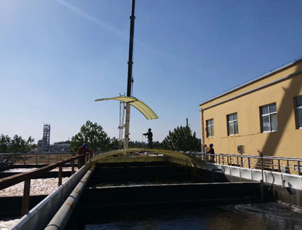 用于污水池和氧化溝的密封,防止臭氣散發(fā)。在蓋板上設(shè)排氣口,將臭氣用管道引出至除臭設(shè)備。