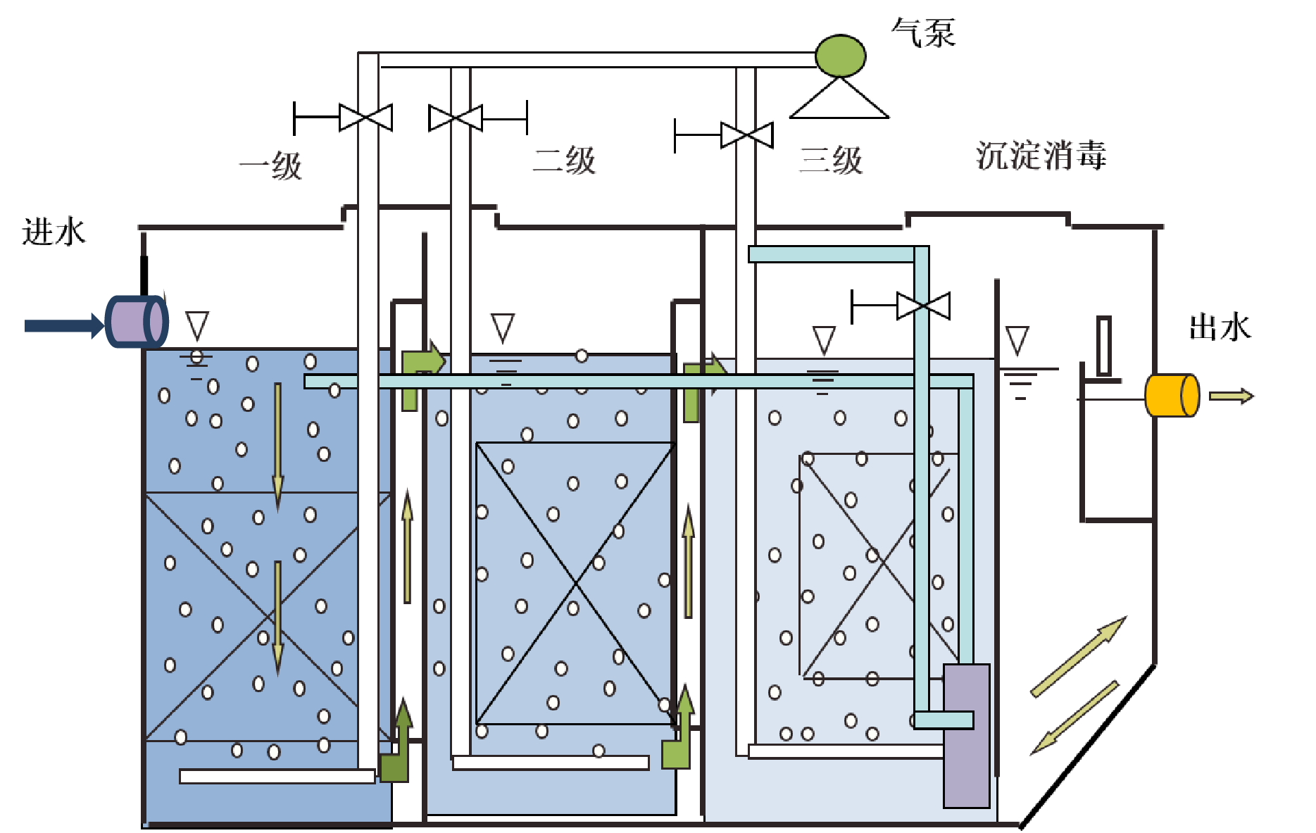(2)無(wú)動(dòng)力增氧歸一模塊化水解槽的科技創(chuàng)新;
